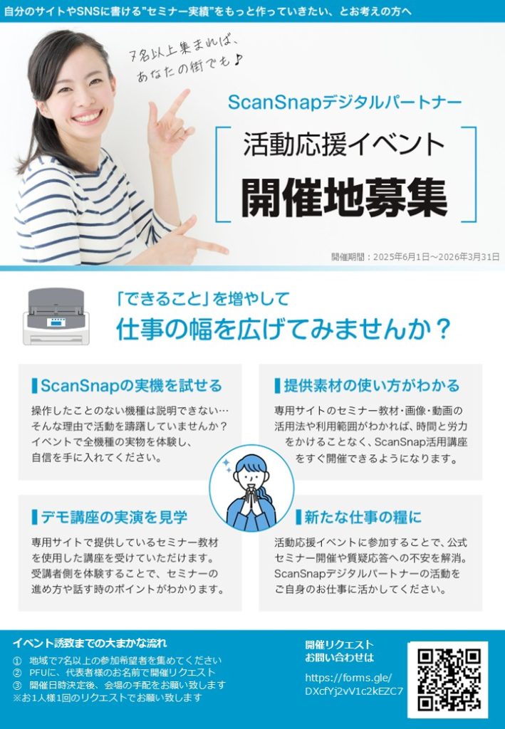 2025年7月1日より、株式会社PFU様と「ScanSnapデジタルパートナー活動応援イベント」を開催しています。7月は長野県諏訪市、9月は愛知県名古屋市で開催。